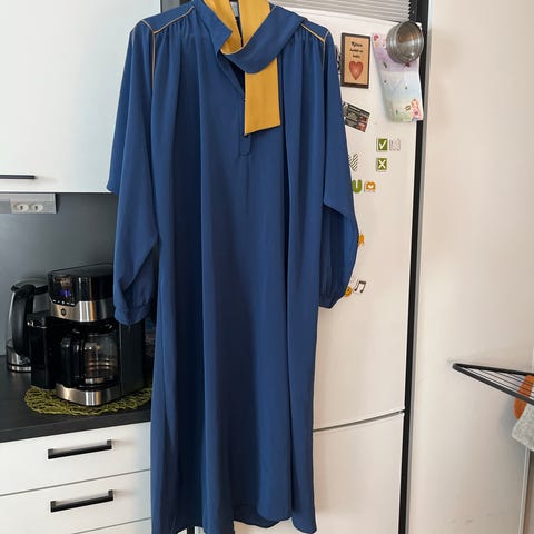 Pirteä sähkönsininen kati retro mekko koko 40 .Mitat Kainalo kainalo 52cm ja Kokopituus 114cm mekossa vyö mukana