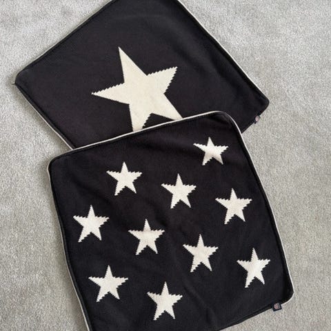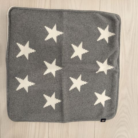 Gantin tähtityyny, vahvaa puuvillaneulosta. Reunoja kiertää terenauha. Tummansininen Gant-vaakunalabel. Vetoketju taustapuolella.