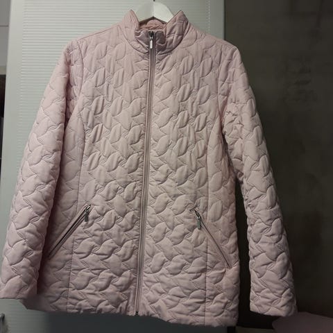 Käännettävä tikkitakki, beige/hiilen musta. Edessä vetoketju, molemmilla puolilla avotaskut