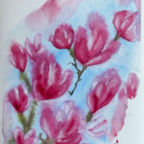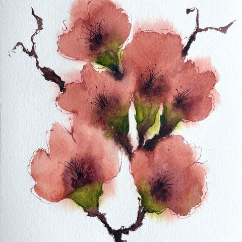 Akvarellimaalaus Kirsikankukkia