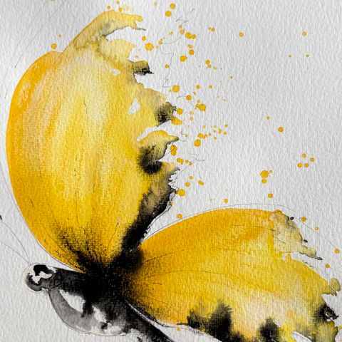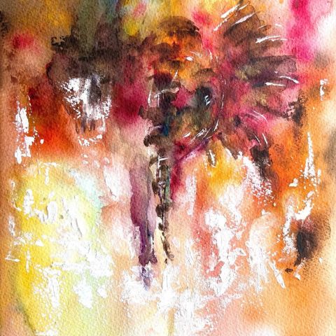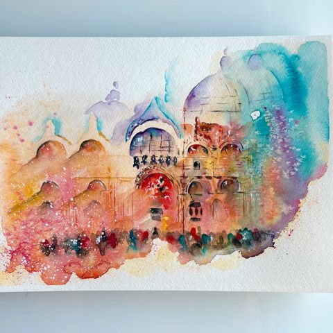 Akvarellimaalaukseni koossa A4. Maalaukseen on tuotu yksityiskohtia gouachilla. Työ suojattu sprey suoja-aineella.