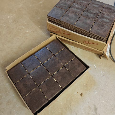 Pukkilan hiekan värinen LPC P21 uni bronze 10cm*10cm. 2 laatikollista jäi remontista yli eli noin 2 neliötä. Lisäksi laatan väriin sopiva saumausjauhe.