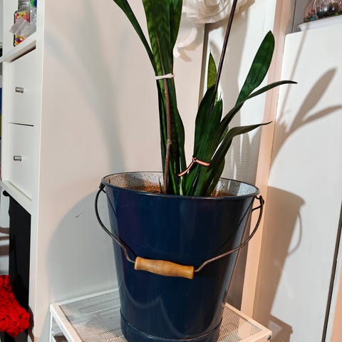 Isomman ruukun sisäpuolella on metallisesta aluslautasesta tullut ruostejälki