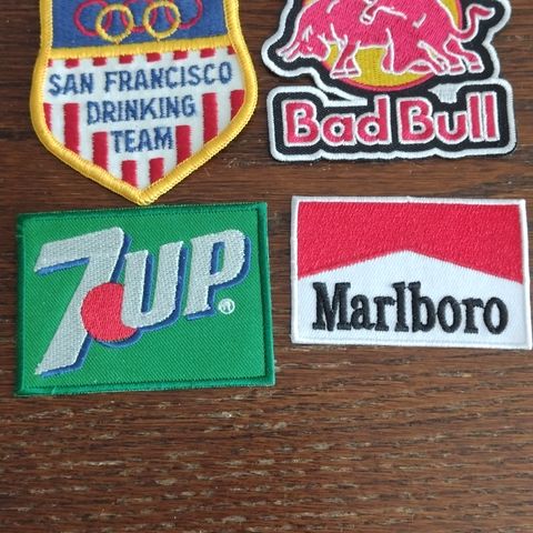 Kuvanmukaisia uudenveroisia, käyttämättömiä upeita huumorikangasmerkkejä.
