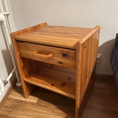 Vanha puinen vintage yöpöytä. Valkoinen väri. Maalipinnassa ajan kuluessa tullutta kulumaa, mutta muuten hyvä kunto. Siisti laatikko sisältä. Tästä saa halutessaan myös kivan eri värisen maalaamalla.