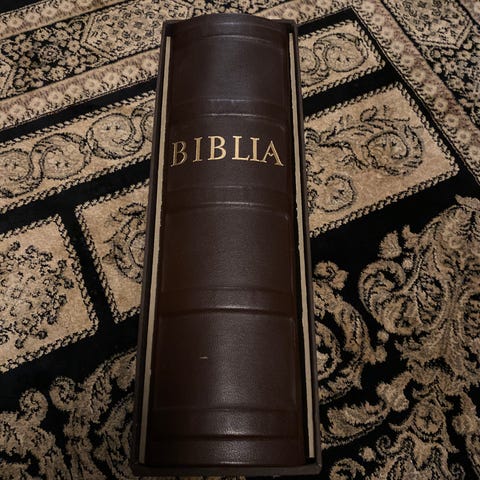 Biblia 1642 näkoköispainos kirjasulku metallilukko mukana säilytyskotelo .painettu Porvoossa 1985
