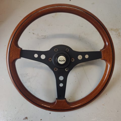 Laadukas aito Raid jalopuuratti Audin keskiöllä ja äänimerkkipainikkeella.