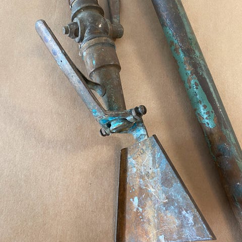 Valmistusvuosi tuntematon, toisaalta arvio voisi olla 50-70-lukujen aika. Hieno vintage-esine, ellei jopa antiikkia jo. Kellokosken leima. 🙂 Ehjä ja sikäli toimiva, että palje toimii. Hieno koriste!