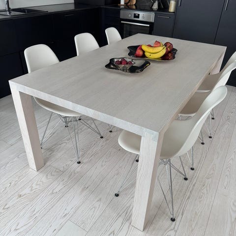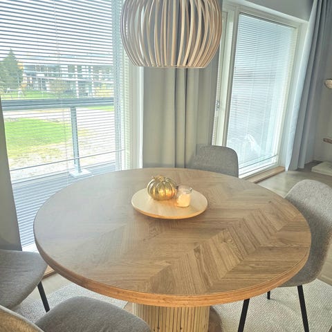 Mija Decorin saarni kalanruotopöytä. Kuin uusi: hiottu ja käsilty öljyvahalla uudestaan. Suomalaista Designia. Avainlippu tuote. Valmistettu Suomessa. Mustat pinnijalat. Sijaitsee Espoon Laaksolahdessa. Saarni laudoista valmistettu. Ovh. 1 350€ uutena.