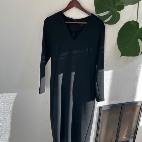 Uudenveroinen mukava musta Cos mekko. Menkossa on joustava yläosa ja joustamaton laskostettu kellomainen alaosa.