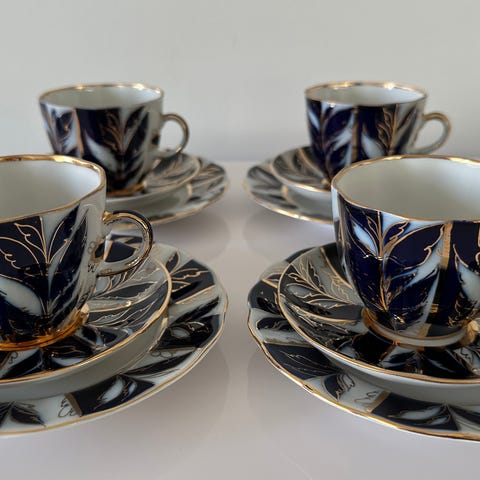 Lomonosov Talvi - ilta kahvikupit, asetit, leivoslautaset (4 kpl/setti)