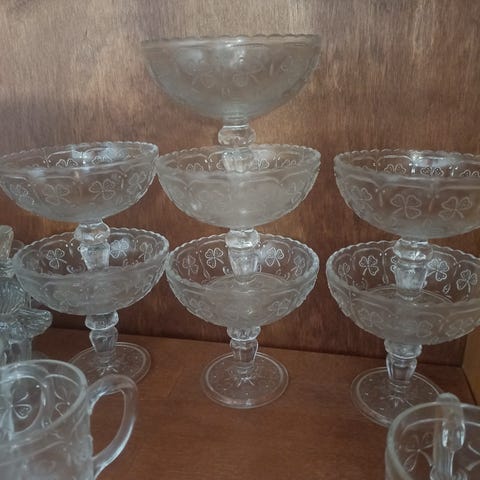 Tämä hieno tarjoiluvati lienee Nuutajärven Apilan vanhempaa tuotantoa (1800-luvun loppua- 1900-luvun alkua) Googlen kuvahaun perusteella.