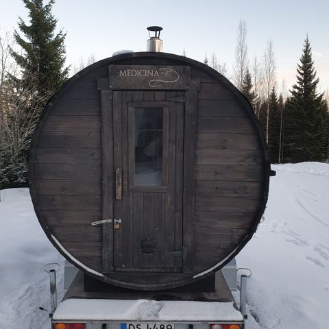 Rakennettu uuden autotrailerin päälle pulttikiinnitteisenä, joten saunan saa myös nostettua pois trailerilta.