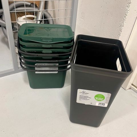 Säkkivälineen laadukkaita roska-astioita.