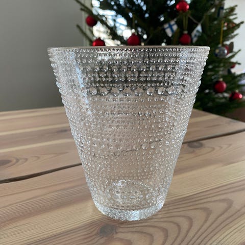 Myydään erittäin siistissä kunnossa olevan Iittalan kastehelmi-maljakko. Väritykseltään sinertävän harmaa.