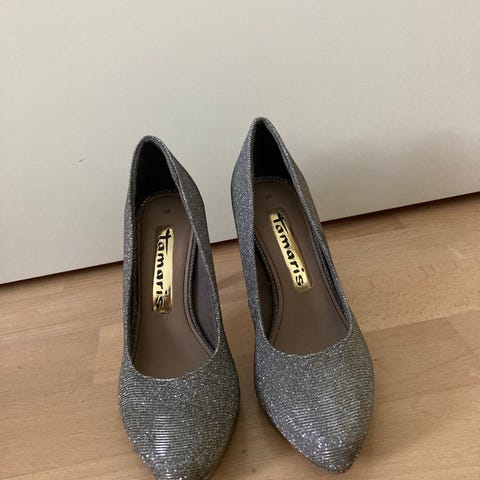 Yleisilme on siisti ja kaunis, nämä ovat ihan täydellisen näköiset mustat Tamaris korkokengät. Jäivät minulle pieniksi. Korko melko korkea n. 8,5 cm, kuitenkin tukeva. Sisällä kaunis kukkakuvio. Sopivat siistiin työasuun tai juhliin. Halutessaan saa mukaan nahkaiset päkiäpehmusteet.