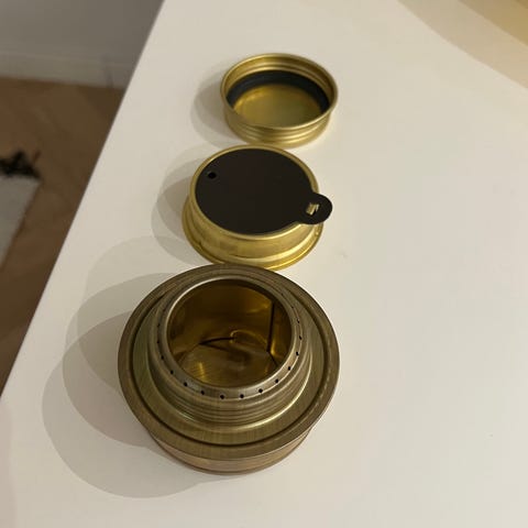 Polttopesä puhdas vain ulkopuolella ajan tuomaa patinaa messingissä.