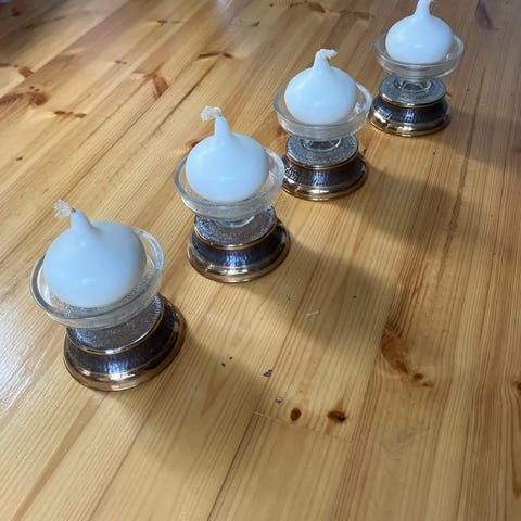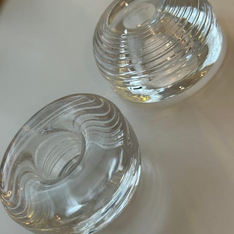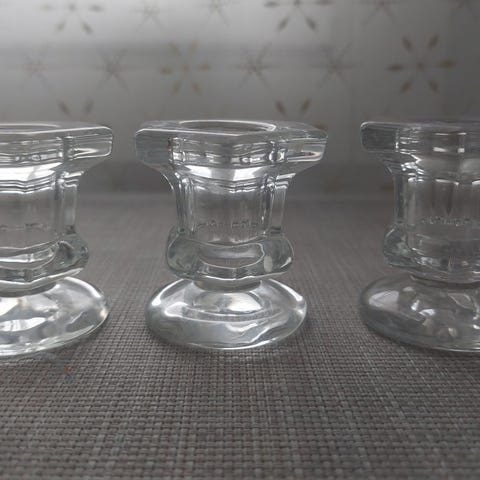 Kynttilänjalat settinä. Metalli, lasi. 🩵🤍