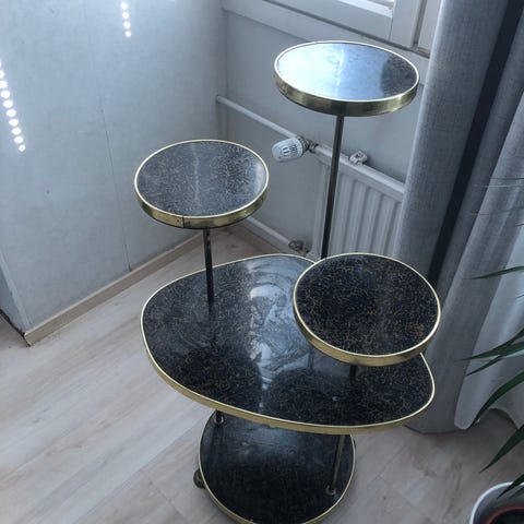 Monitasoinen kukkapöytä musta kullanvärisillä yksityiskohdilla