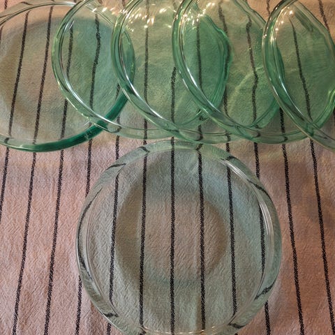 Myytävänä 6 kpl Nuutajärven lasi-lautasia. Lastu-sarjasta.