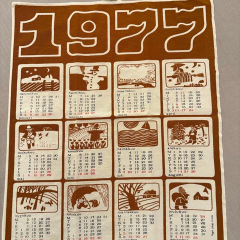Myydään vuoden 1991 seinäkalenteri. Mageet kuvat.