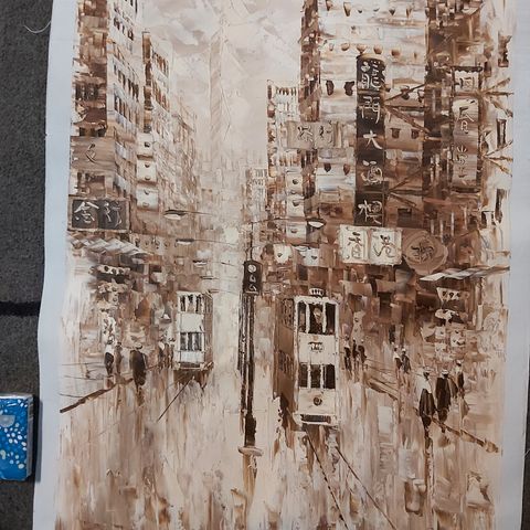 Myydään Hong Kongista ostettu taulu. Ehkä öljyvärimaalilla maalattu.