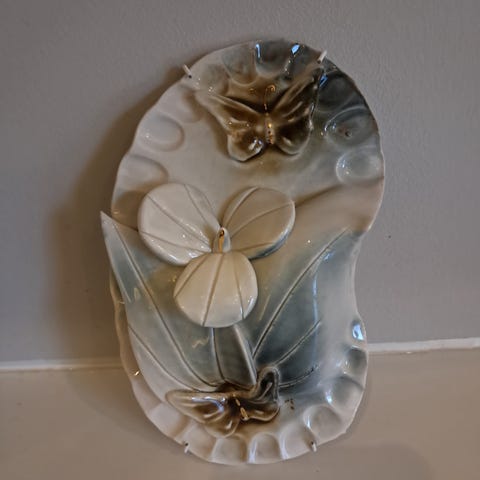 Italiasta ostettu pienestä taidepajasta joskus 20 vuotta sitten eikä ikinä ole seinälle päässyt. Nyt loppu hilloaminen. Oletan, että on savea, punaruskea, mustalla maalattu reunat ikään kuin kehykset. Kerubeilla soittotreenit menossa. Hahmot yms. koholla taustasta. Sävy ehkä vähän tummempi kuin kuvissa. Kaunis taulu.