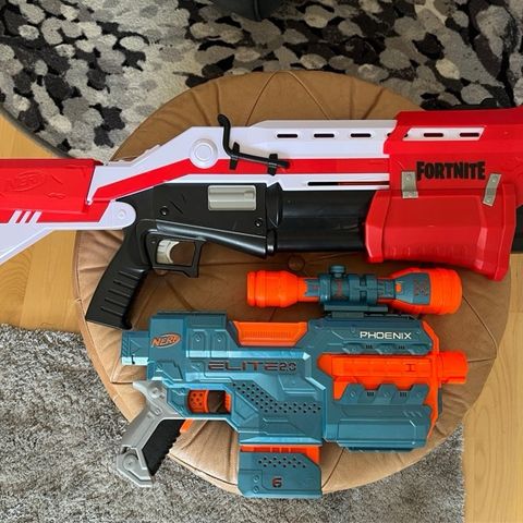 Kaksi Nerf-pyssyä. Ilman panoksia, muutama saattaa löytyä mukaan. Nouto Amurista tai postitus.