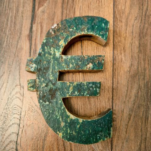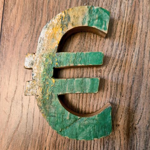 Indonesialaisista kalastusveneistä kierrätetty puinen € merkki.