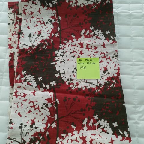 Puna-valkoruudullinen 3-osainen valmisverhosetti bistro/kahvilatyyliin.