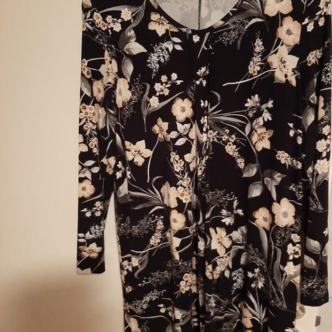 Niska-helma n. 93 cm. Kiva, ilmava tunika, voi mennä mekkonakin lyhyemmälle käyttäjälle. Alle vain csprit tai legginssit ja asu valmis.