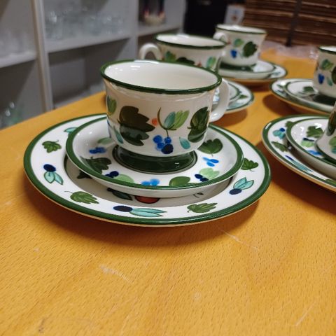 Myydään huippukuntoisia Dorrit von Fieandtin suunnittelemia, käsinmaslattuja Arabia Palermo kahvikuppeja ja leivoslautasia.