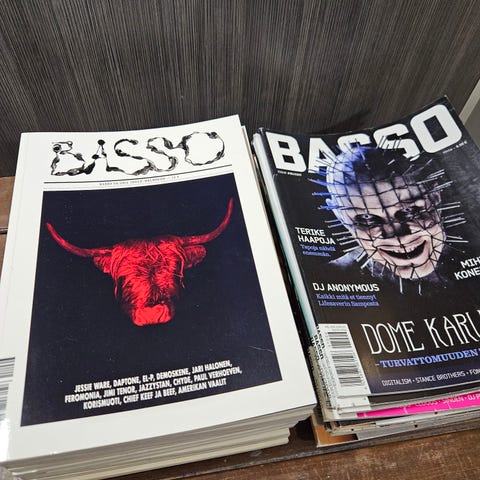 Ehjä ja siisti Basso median Basso-lehden vuosikerta, jonka jälkeen julkaisu lopetettiin. Yhden lehden takakannessa taitosjälki (kuva3), muuten kunnossa ei silmiini isompaa mainittavaa. Alkuperäinen hinta ollut 15€/kpl. Haku Oulunsalon Santaniemestä tai toridiili.