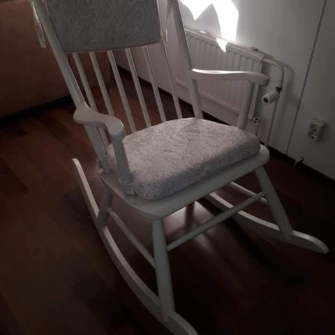 Käytössä terassilla ollut keinutuoli.