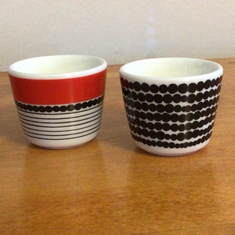 Myydään Siirtolapuutarha Oiva sarjan munakupit. Myydään pakettina. Uudenveroiset.