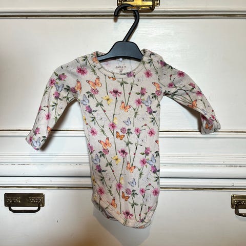 Vaaleanpunainen body, jossa pitsisomisteinen pystykaulus.