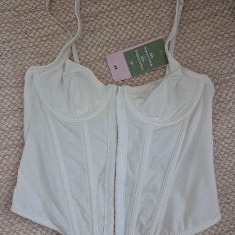 Bershka käyttämätön korsetti toppi koossa XS. Täysin valkoinen, ei lika jälkiä. Topissa on säädettävät olkaimet ja vetoketju takana.