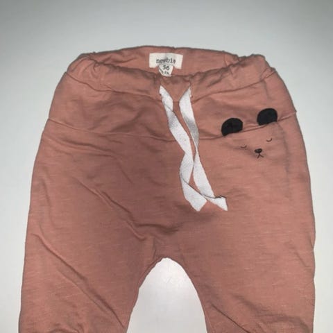 Newbien kerman väriset rusettipyllylegginssit kokoa 56cm, vastaavat mielestäni kokoaan. Ehjät ja tahrattomat legginsit, oikein siisti käytetty kunto, ihan aavistus pesuhaitua pinnassa. Pesulaput leikattu pois.