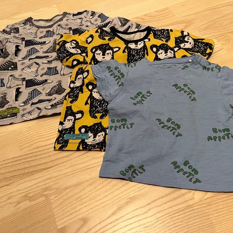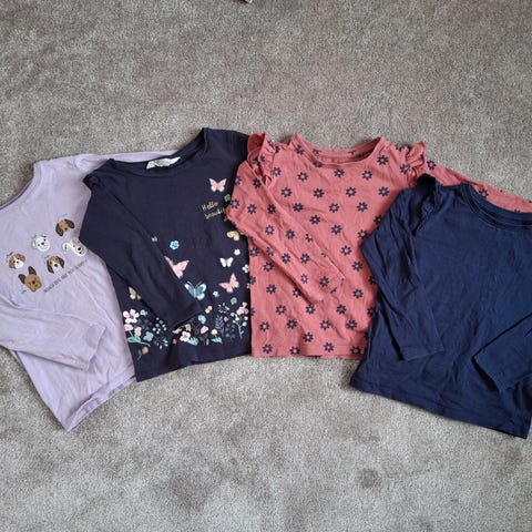 Myydään paitapaketti tytölle. Merkit ovat merkittömiä, lappu poistettu tai Lupipu. Yksi Name it. Siistejä ja kovin tykättyjä, mutta meille jo käytettynä tulleita, joten pesunukkaa osassa ja värit ei täydelliset. Koko vastaa kaikissa 98cm.