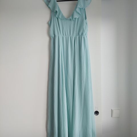 Kerran käytetty Vilan sininen juhlamekko. Koko 40. Pääntietä kiertää kaunis röyhelö. Vyötäröllä kuminauha. Viimeisessä kuvassa oikea väri näkyy parhaiten.
