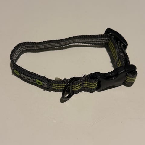 Harmikseni ostin väärän koon,nyt kotia etsii tämä vain koitettu,ei käytetty, ihana Heijastava kaulapanta,pehmuste mustaa fleeceä,violettia sävyä ja heijastin nauhaa,pehmopannan pituus lyhimmillään 40cm,isoimmillaan 45cm,korkeutta 4,5cm.DesignDog käsityötä .