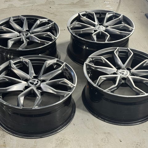 Kuvan uudenveroiset vanteet joissa renkaat kiinni. Renkaat on mitä on, mutta vanteet uudenveroiset.