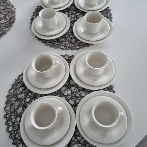 Myydään 12 kpl hyväkuntoisia ja vähän käytettyjä Arctica kahvikuppeja aluslautasineen, sekä saman sarjan sokerikko ja kermakko. Kaikki yhdessä.