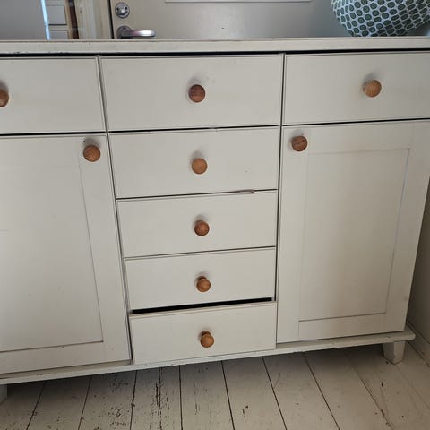 Myydään kuvassa oleva senkki+yläosa. Yläosan taustalevyssä pieni reikä alanurkassa, muuten ehjä setti.