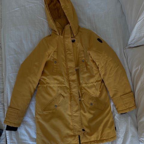 Muutaman kerran käytetty sinapin keltainen 2B takki koossa M. Takki on todella hyvässä kunnossa. Takin väri on pikkasen tummempi luonnossa kuin kuvissa