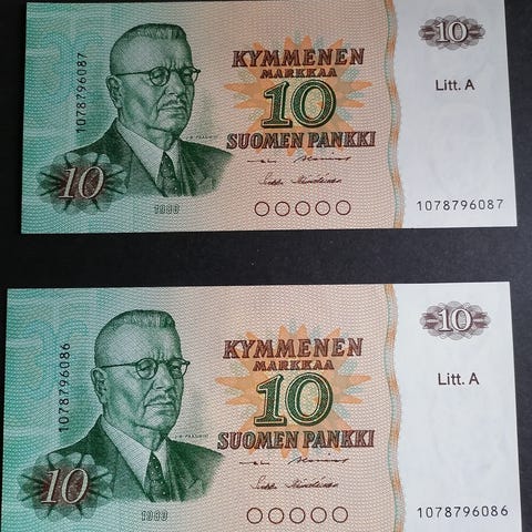 Kuvan 3 seteliä vuodelta 1980 myynnissä. Hyvä kunto vaikka taittuneet. Myydän kaikki 3 4Euron hintaan