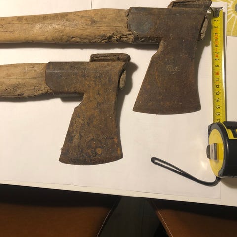Hyväkuntoinen kirves, halkeama hamaran puolella, näkyy kuvissa. Varsi heiluu, vaatii kunnostusta. Myyn myös ilman vartta (samaan hintaan)
