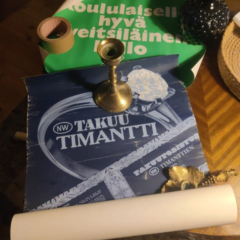 Maito on enemmän. Näitä muutama löytyy toisessa jotain teipin jälkiä yläreunassa myydään se teipattu 3e ja siistimpi 5e. 70x50cm Toijala postitan nää on nii kippurassa että vähä vaikee kuvata.