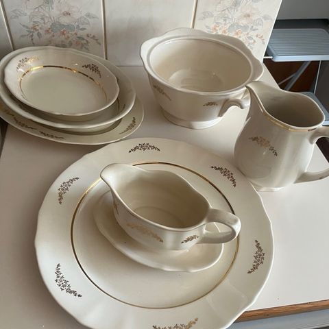 Kuuden hengen ruokakalusto, Arabia Itkevä Irja, vain muutamia lautasia käytetty.