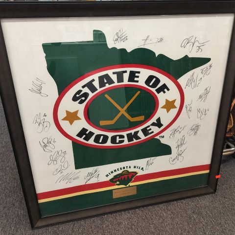 Suomen ja Kanadan pelaajien nimikirjoituksilla varustetut taulut.Saa tarjota.